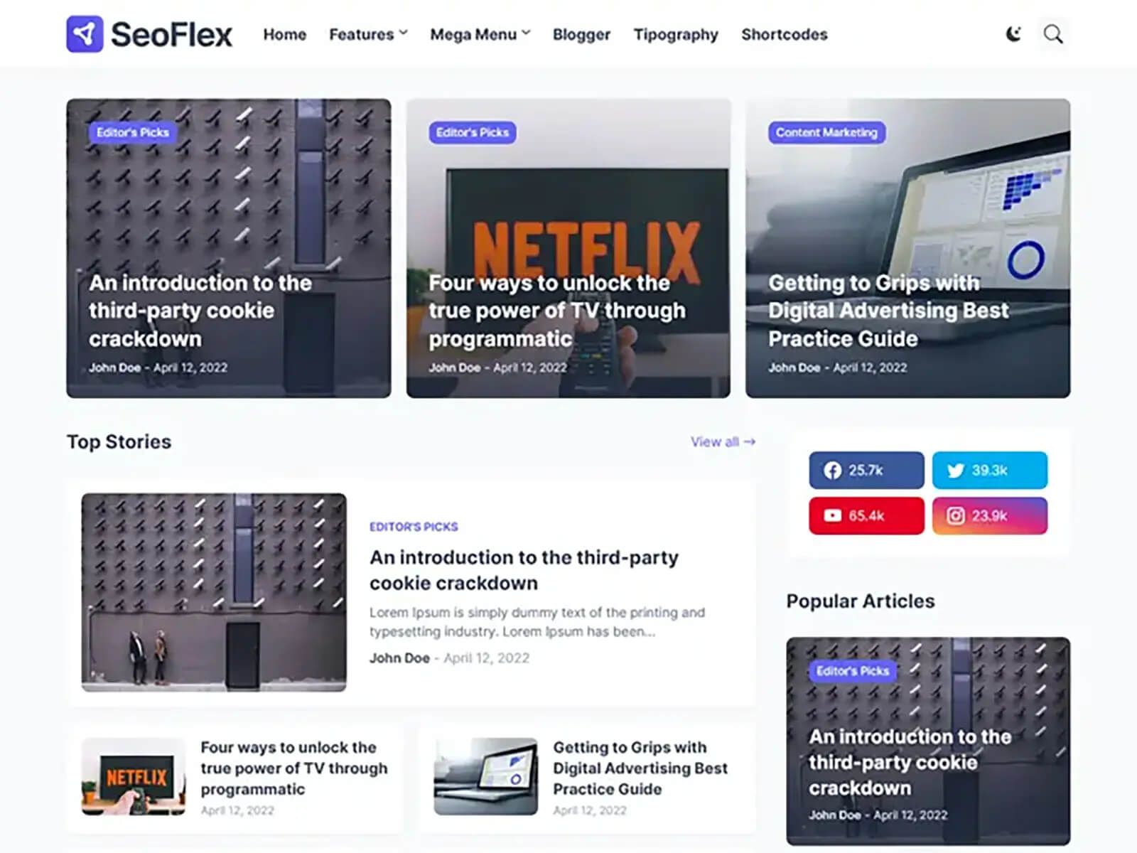 SeoFlex is a SEO Friendly & Flexible Blogger Template with a unique design, high performance, and ready for Core Web Vitals. Help Links: -> Live Preview -> Documentation