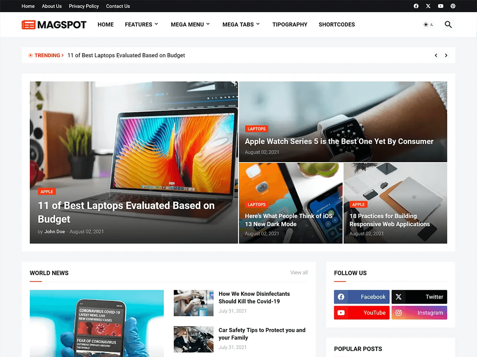 Magspot is a professional, flexible, fast and fully customizable responsive news and magazine blogger / blogspot template. Help Links: -> Live Preview -> Documentation