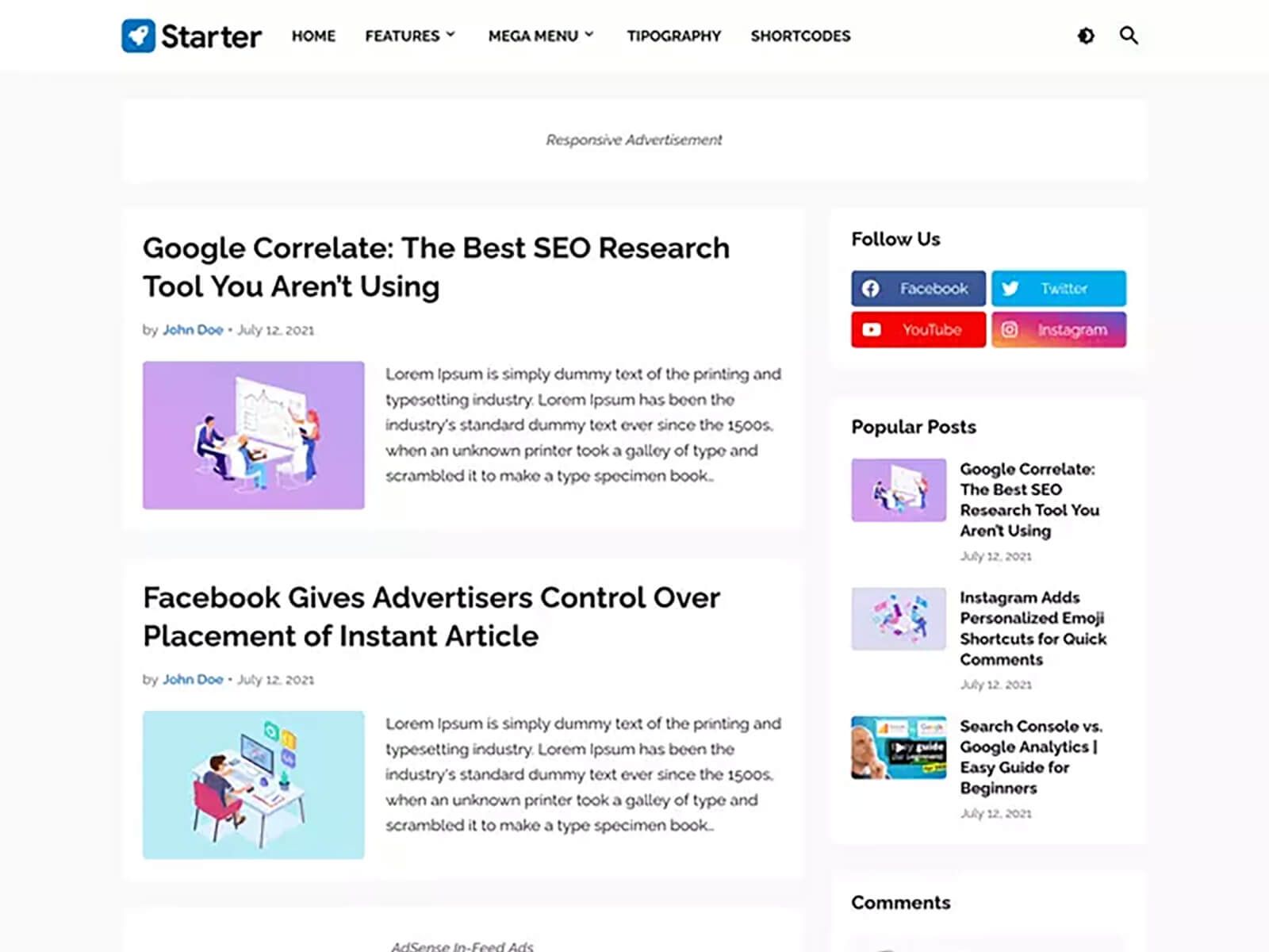 Starter is a professional and super clean responsive blogger template. Starter is a fast and highly optimized responsive blogger template. Help Links: -> Live Preview -> Documentation